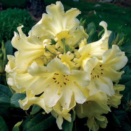 Sterke Rhododendron met gele bloemen.