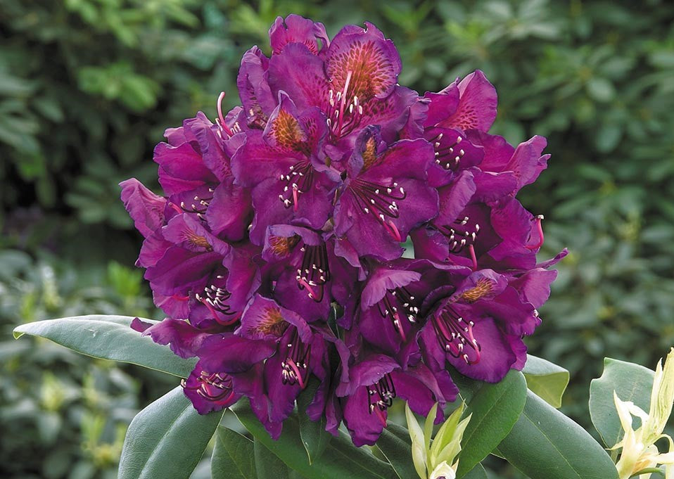 Mooie Rhododendron met schitterende donkerpaarse bloemen.